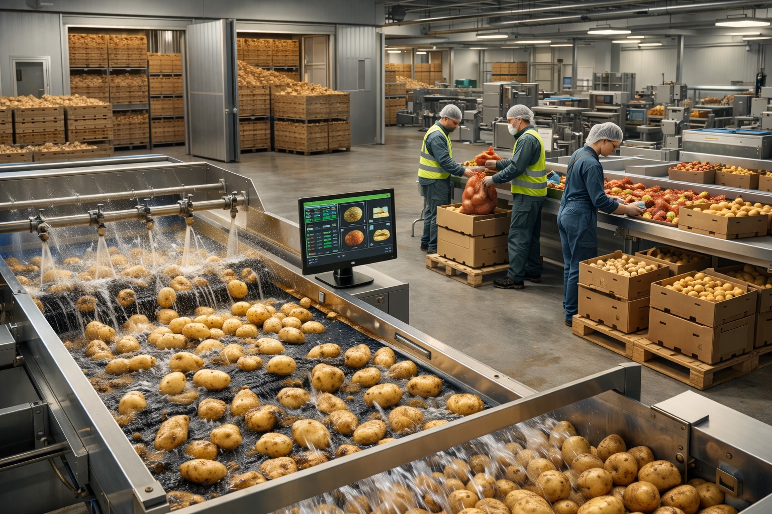 Pour l’industrie, les pommes de terre sont livrées en vrac ou en bacs, prêtes à être transformées en frites, purée déshydratée, chips ou encore gnocchis. Dans ce cas, les critères de qualité sont très normés pour garantir l’uniformité des produits transformés.